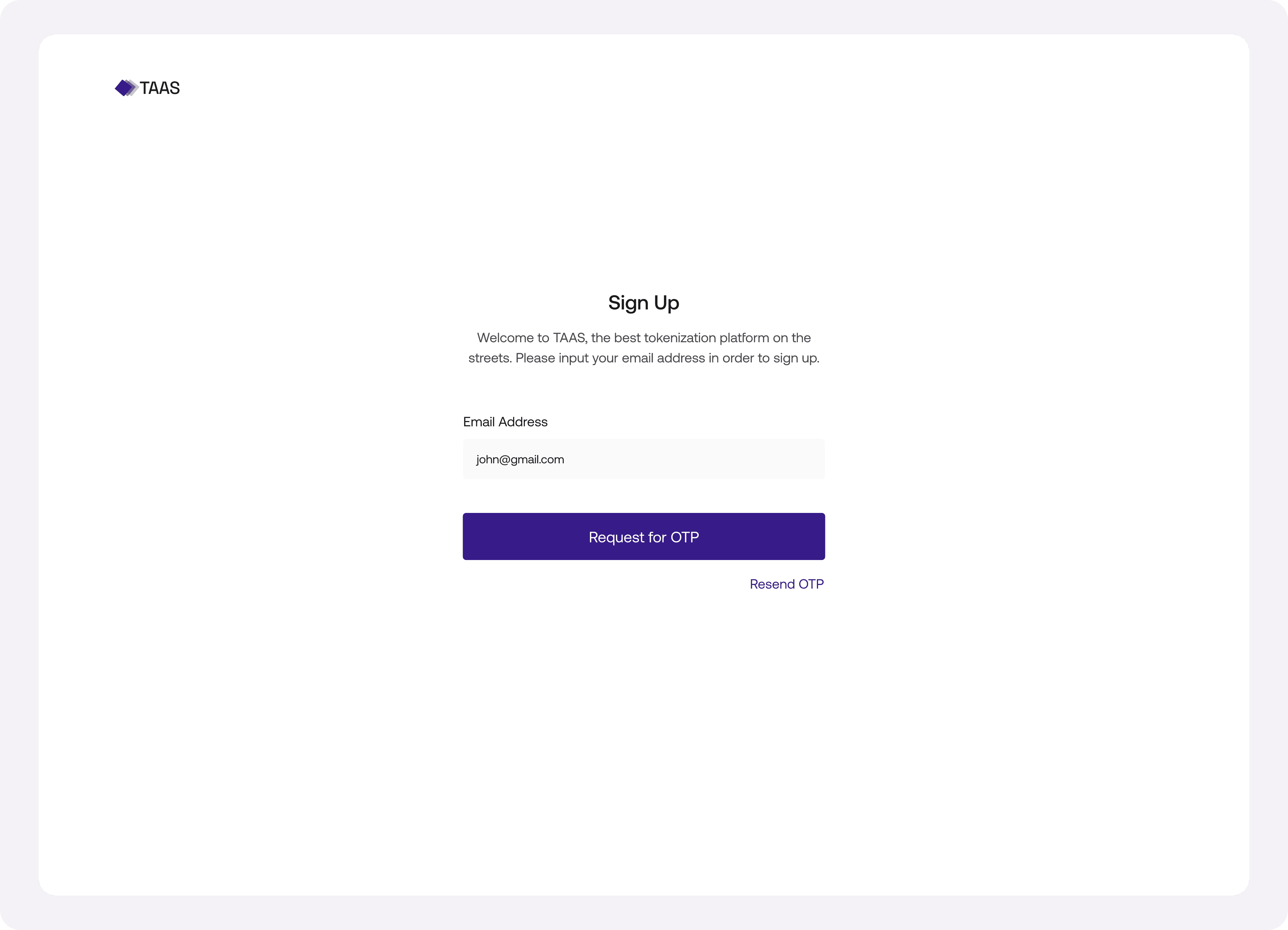 Although TAAS was built on the blockchain, we used the traditional onboarding methods, to simplify the onboarding process for potential users. On TAAS, users are encouraged to sign up using their email address.